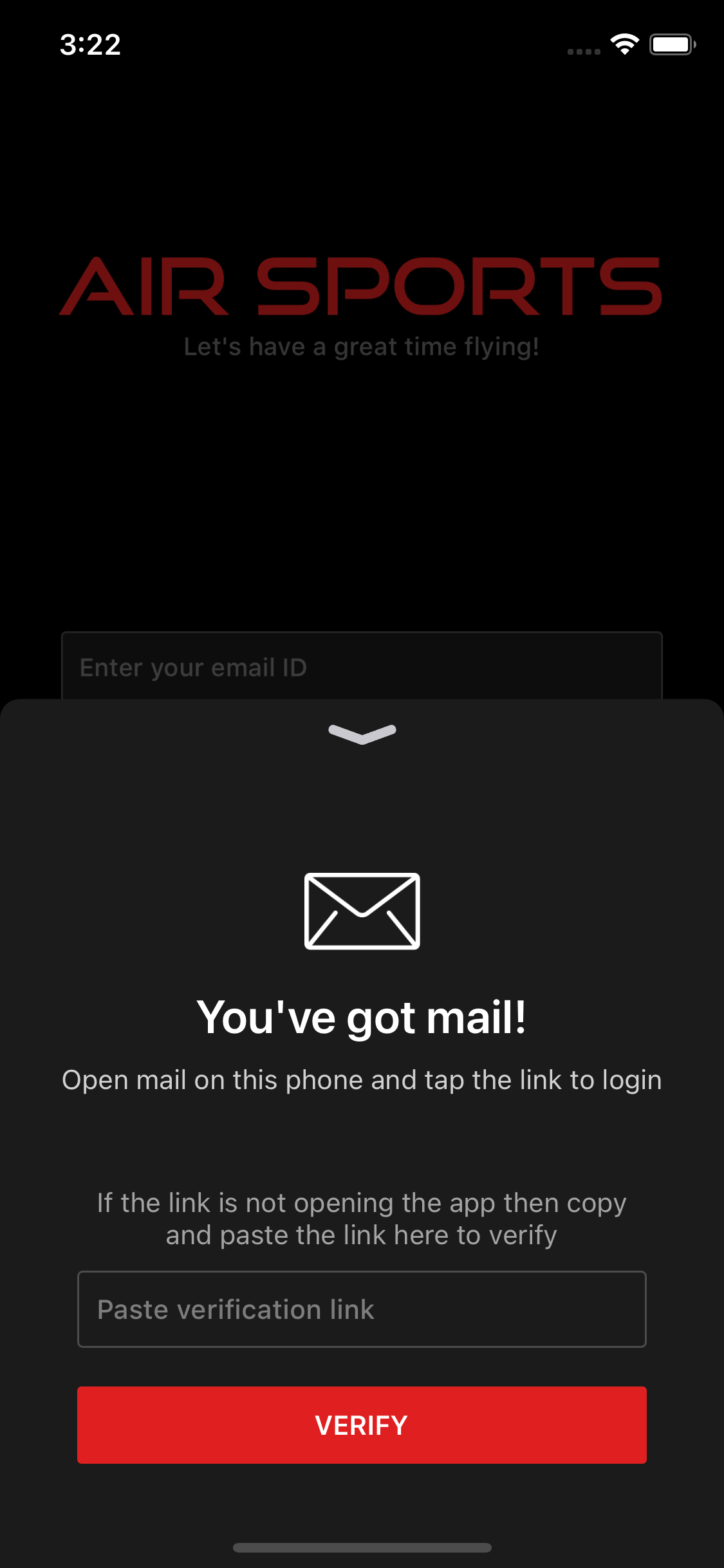 If you have reached this page the validation link has not been opened in the Air Sports app as expected. Please copy the link from the email and paste into the field in the "You've got mail" pop-up in the app.